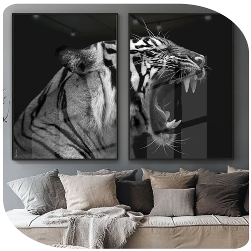 Quadros Decorativos De Tigre – Sombra e Fúria – Conjunto 2 Peças | Dekorahaus