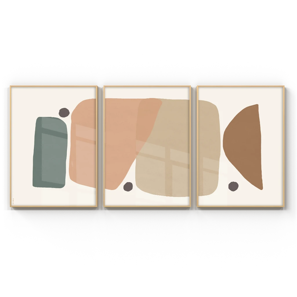 Quadros Decorativos Abstratos – Dança Das Formas – Conjunto 3 Peças | Dekorahaus